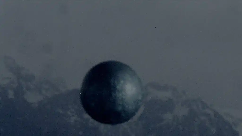 Speculative climate-apocalypse is staged through an unrecordable, naked-eye sphere that exposes the limits of photographic evidence and technological mapping, turning perception itself into the site of ecological warning and ontological uncertainty. By privileging celluloid’s material temporality and invented imaging apparatuses, the work fuses media archaeology with science-fiction and mysticism to critique modern epistemologies, producing a dilated, melancholic time where environmental catastrophe and occult renewal coexist.