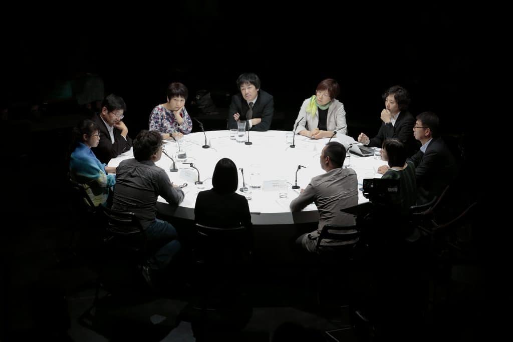 By fusing documentary and performative symposium, the work mobilizes dialogic, research-based practice to contest official narratives, foregrounding how hegemonic power structures shape representation and opening a space for collective critique and political resistance.
